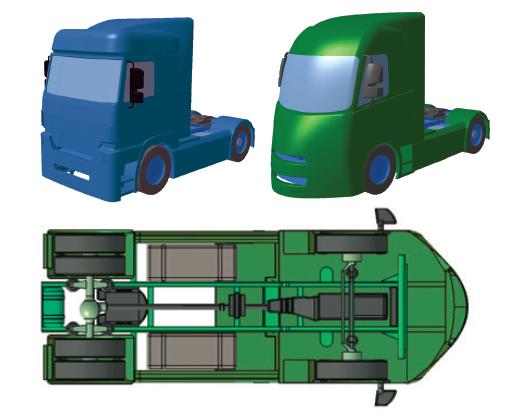 The compact design leads to a flat front which in the event of a crash with a smaller vehicle absorbs very little crash energy. A study was consequently launched to investigate if a longer tractor optimised for better aerodynamics and pedestrian safety (Figure 1) could be equipped with an energy-absorbing crash management system (CMS).
