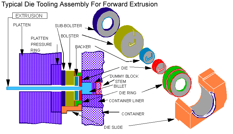 Billet sizes cover the range from 50 mm diameter to 500 mm with length usually about 2-4 times the diameter and while most presses have cylindrical containers a few have rectangular ones for the production of wide shallow sections.