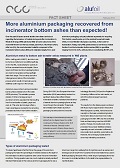 Fact Sheet on aluminium recovery from bottom ashes This new fact sheet summarises an article published earlier in the International Aluminium Journal no. 6 of June 2013 written by EAA Packaging Group consultant François Pruvost and presents an up-to-date overview concerning the behaviour of aluminium packaging items during and after incineration in Waste-to-Energy (WtE) plants including quantifying the percentages of aluminium metal typically available to be recovered from the incinerator bottom ashes. Based on five tests performed in different European household waste incinerations and on additional scientific research it can be concluded that the metallic transfer ratios for beverage cans, foil containers and even thin (laminated) foil are relatively high. This means that most aluminium packaging can be found back in the bottom ashes of the incinerators and – depending on the individually arranged combination of Eddy Current separators and / or other advanced sorting technologies - can be extracted for further treatment and recycling into new valuable aluminium products. However, it must be stated that the aluminium industry’s preferred recycling solution for aluminium packaging is via separate collection and sorting through well managed metal packaging collection systems. But as these schemes differ from country to country and taking into account that so far thethinner aluminium foil and foil laminated flexible packaging often end up in the household waste fraction sent to the WtE plant for treatment, it is strongly recommended to keep all options open, including the recovering of aluminium from the incinerator bottom ashes.